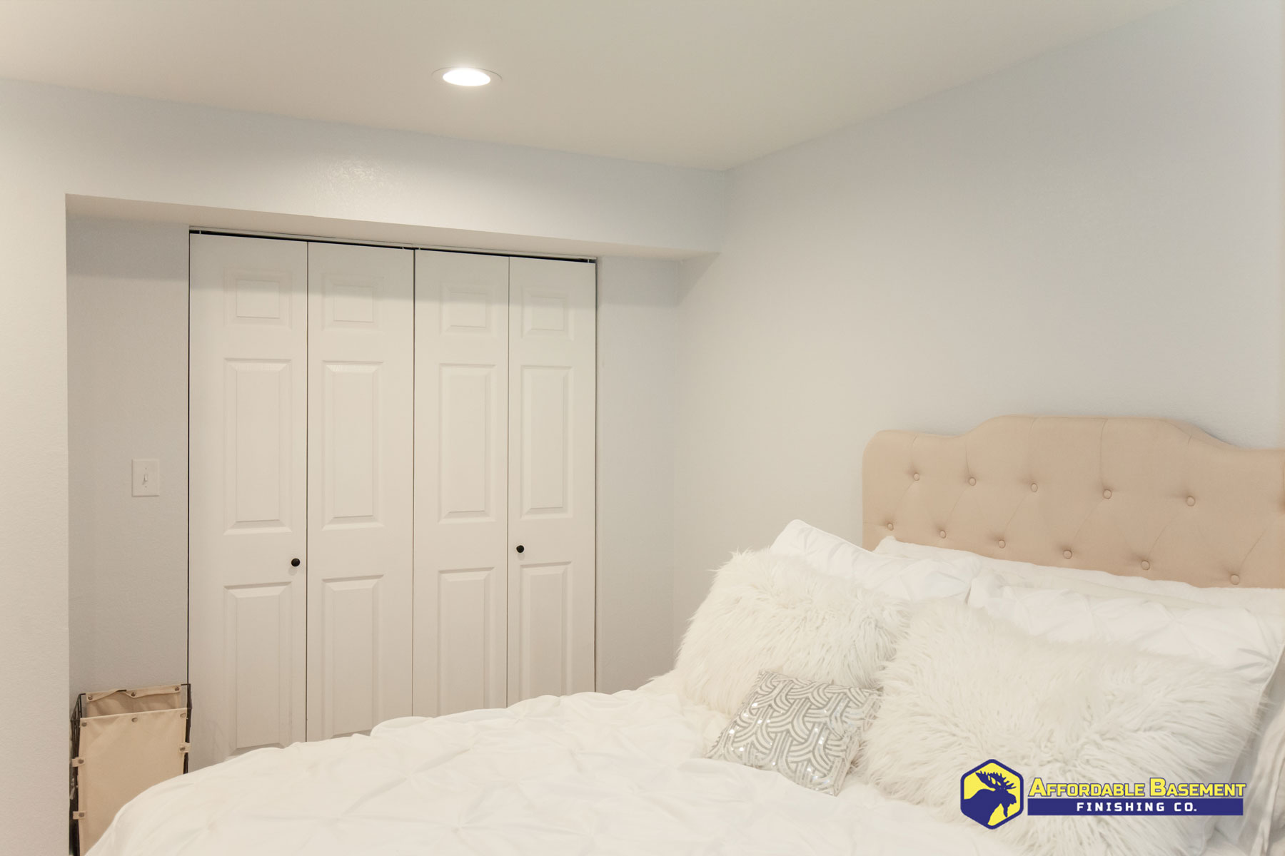 Full bedroom with egress window, closet, and private bathroom for overnight visitors.